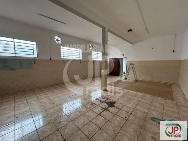 1 salão com aproximadamente 200 m², 2 banheiros, despejo e quintal.